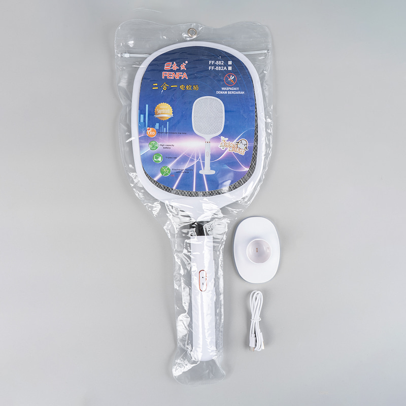 مضرب البعوض الكهربائي FF-882 بسعة 1200 مللي أمبير مع مصباح مطرز