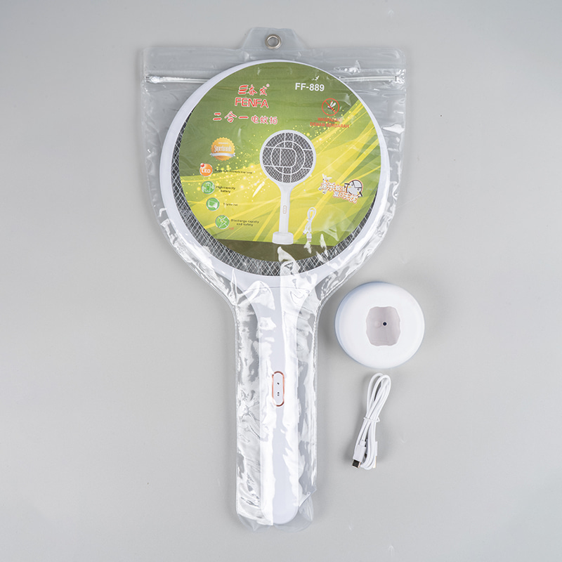 مضرب بعوض كهربائي متعدد الوظائف مزود ببطارية ليثيوم FF-889 وقاعدة شحن USB بسعة 500 مللي أمبير في الساعة